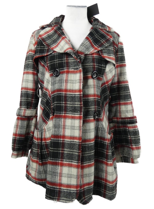 Nové - Dámský černo-červeno-šedý kostkovaný vlněný kabát CLG Paris