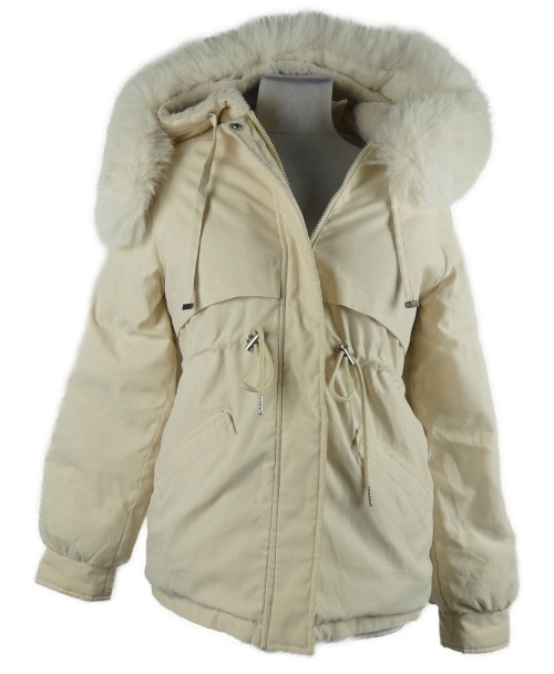 Dámská smetanová šusťáková zimní parka s kapucí