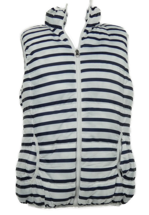 Dámská bílo-tmavomodrá pruhovaná šusťáková zateplená vesta