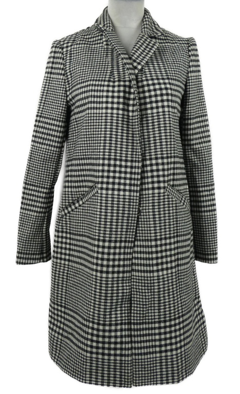 Dámský černo-bílý kostkovaný vlněný kabát Primark