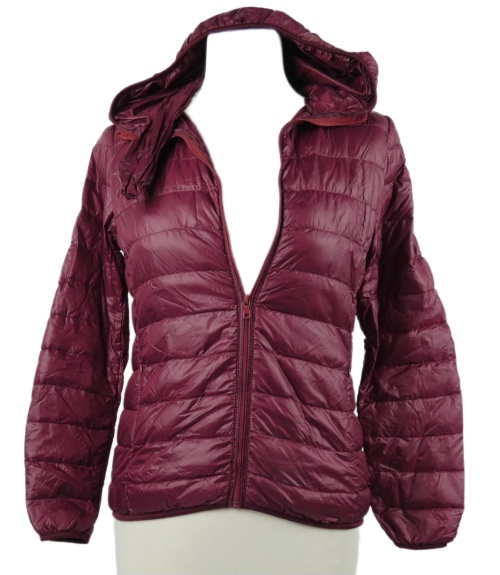 Dámská vínová šusťáková lehce zateplená bunda s kapucí + sáček na sbalení