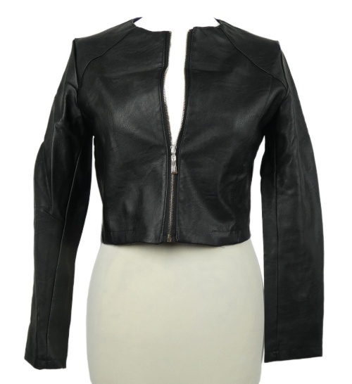 Dámská černá koženková crop bunda