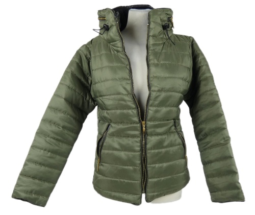 Dámská khaki šusťáková zimní bunda s ukrývací kapucí