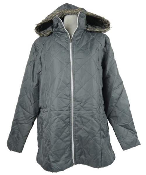 Dámská šedá prošívaná šusťáková zateplená bunda s kapucí