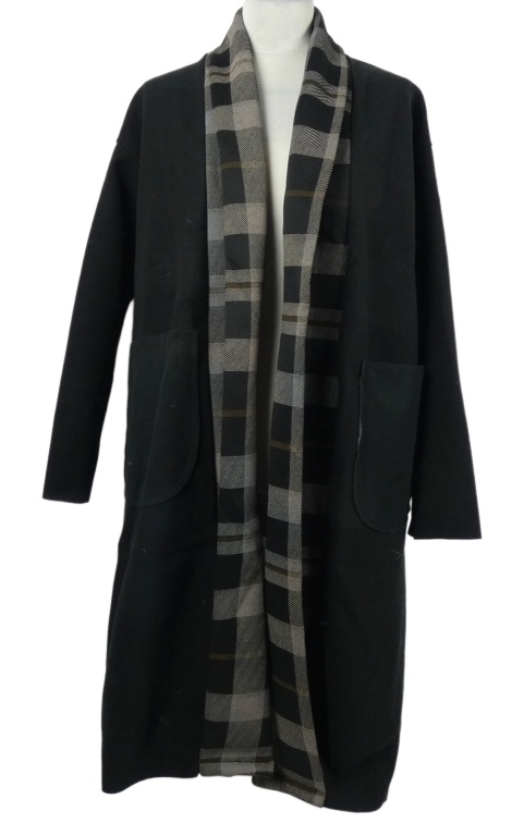 Dámský černo-kostkovaný flaušový kabátový cardigán