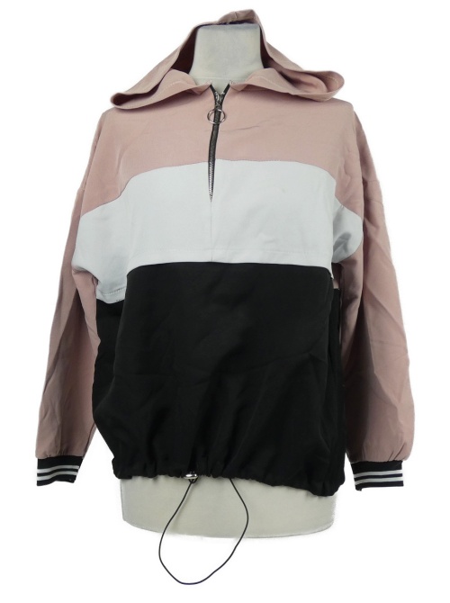 Dámská růžovo-bílo-černá lehká bunda s kapucí
