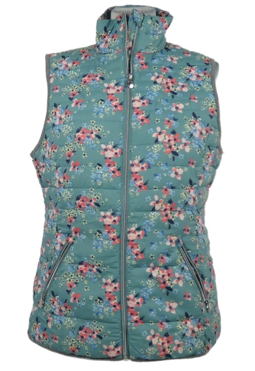 Dámská světlemodrá květovaná šusťáková zateplená vesta Paco Boutique