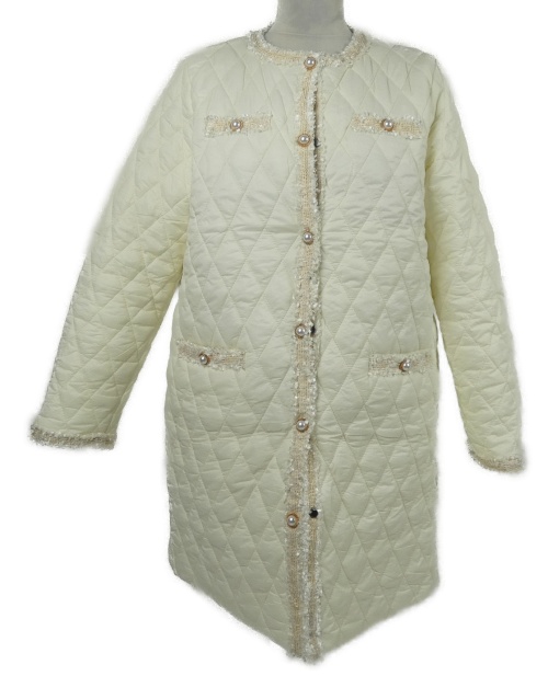 Dámský smetanový prošívaný šusťákový zimní kabát s gombíky Savida