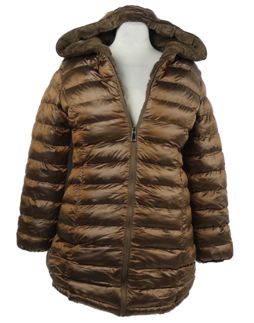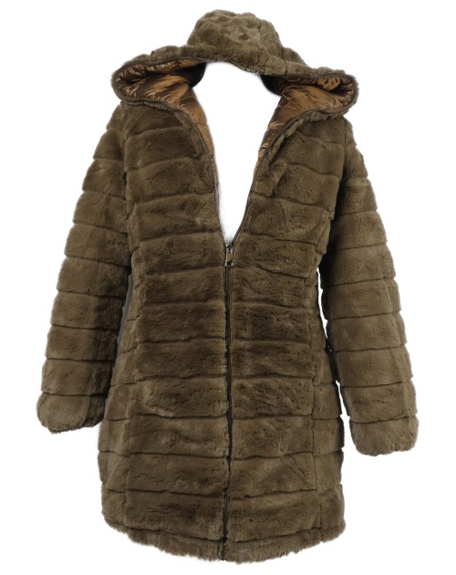 Dámský hnědý kožešinový/šusťákový zimní kabát s kapucí