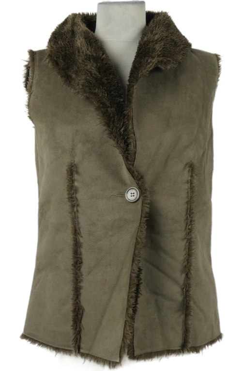 Dámská hnědá semišová zateplená vesta s kožíškem