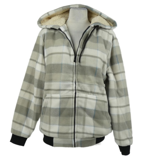 Dámská béžovo-bílá kostkovaná fleecová zateplená mikina s kapucí