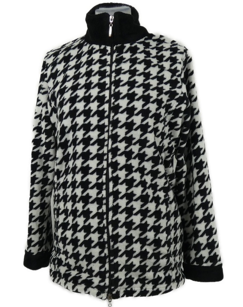 Dámská černo-bílá vzorovaná plyšová bunda