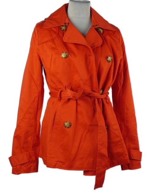 Dámský červený plátěný jarní krátký kabát s páskem Amisu