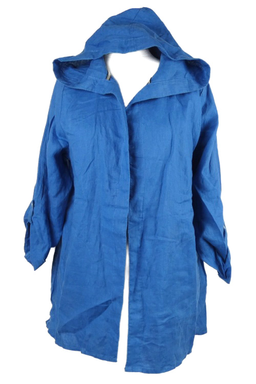 Dámský modrý lněný cardigán s kapucí
