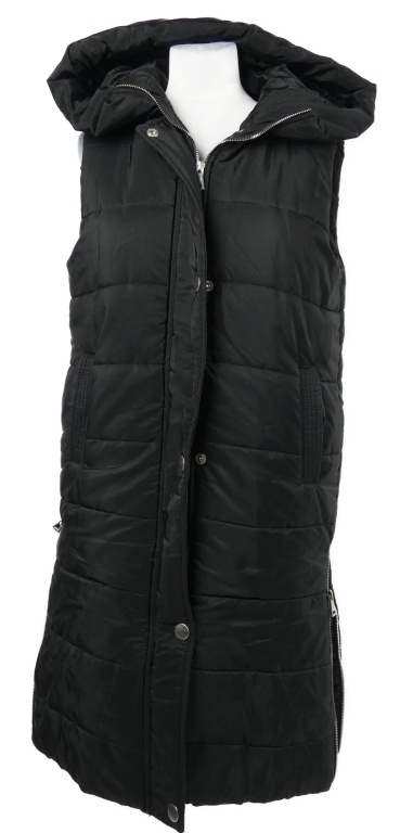 Dámská černá šusťáková zateplená maxi vesta s kapucí Qed London