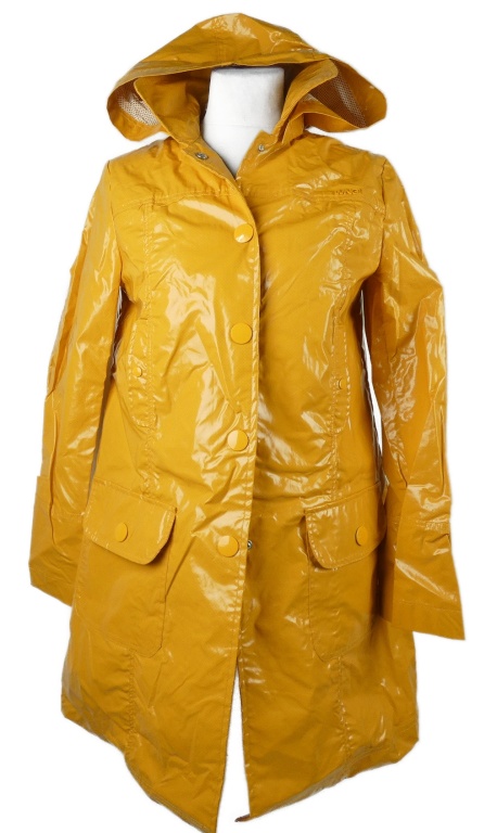 Dámský okrový puntíkovaný pogumovaný kabát s kapucí MNG
