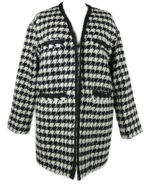 Dámský černo-bílý kostkovaný zateplený kabát Mango