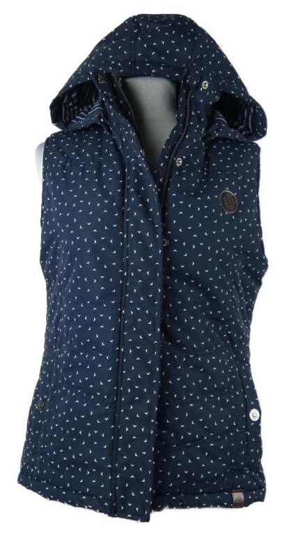 Dámská tmavomodrá vzorovaná šusťáková zateplená vesta s kapucí Gina