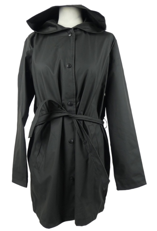 Dámský černý pogumovaný podzimní kabát s páskem a kapucí JDY