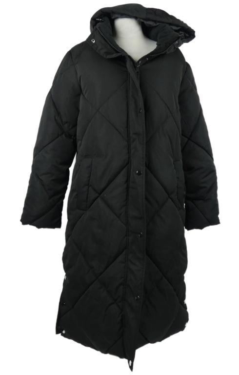Dámský černý šusťákový prošívaný zimní kabát s kapucí Dunnes