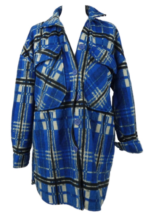 Dámská modro-béžovo-černá kostkovaná fleecová košilová bunda