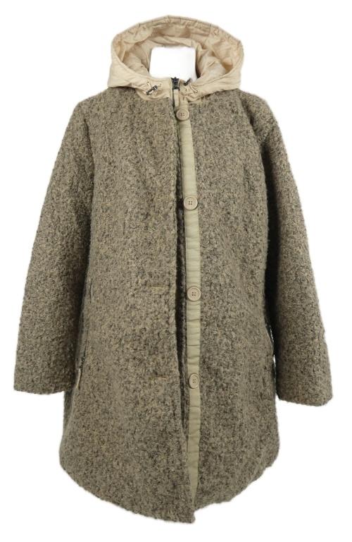 Dámský béžovo-černý melírovaný buklé kabát s kapucí Laura Torelli