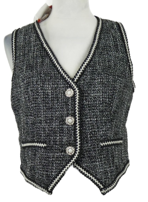 Nové - Dámská černo-bílá melírovaná pletená crop vesta Cider