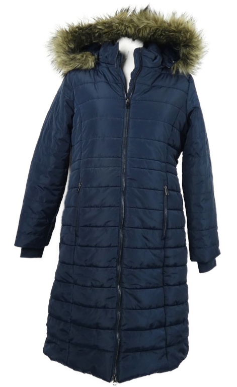 Dámský tmavomodrý šusťákový zimní kabát s kapucí Cotton