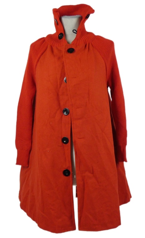 Dámský červený flaušový kabát s pletenými rukávy