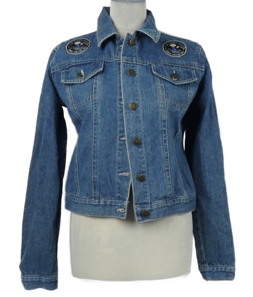 Dámská modrá crop riflová bunda s nášivkami Brooker