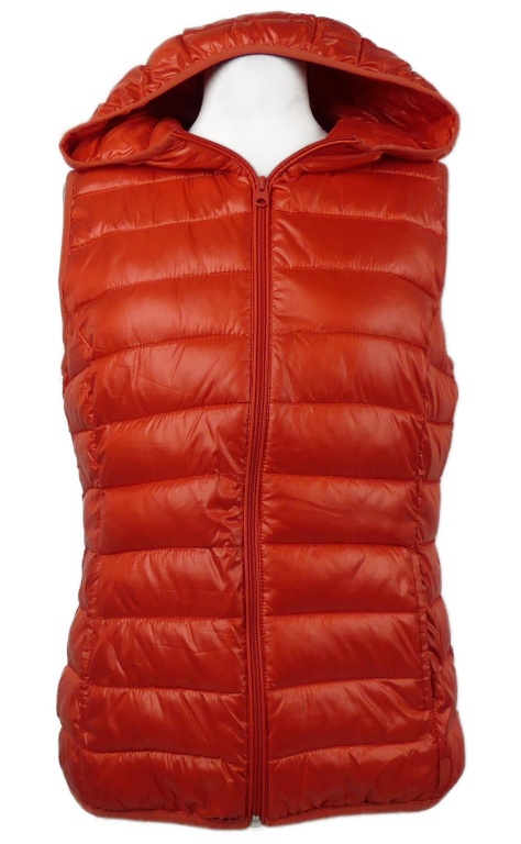 Dámská červená šusťáková prošívaná zateplená vesta s kapucí