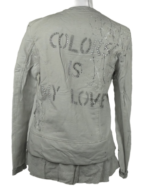 Dámský šedý teplákový vrstvený kabátek potiskem a kamínky