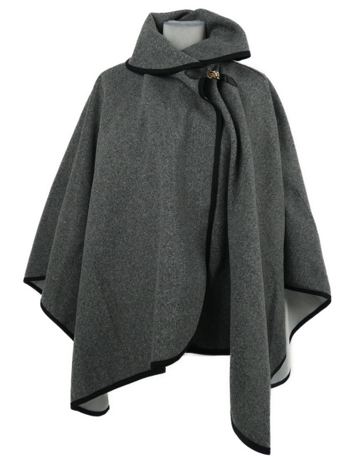 Dámské šedé flaušové kabátové pončo se sponou