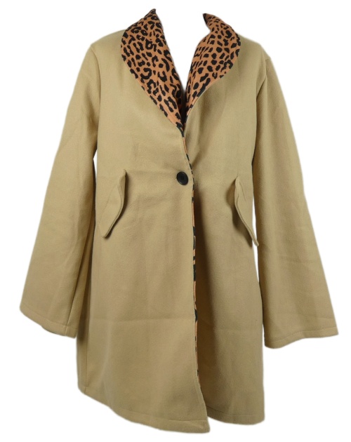 Dámský béžovo-vzorovaný flaušový kabát