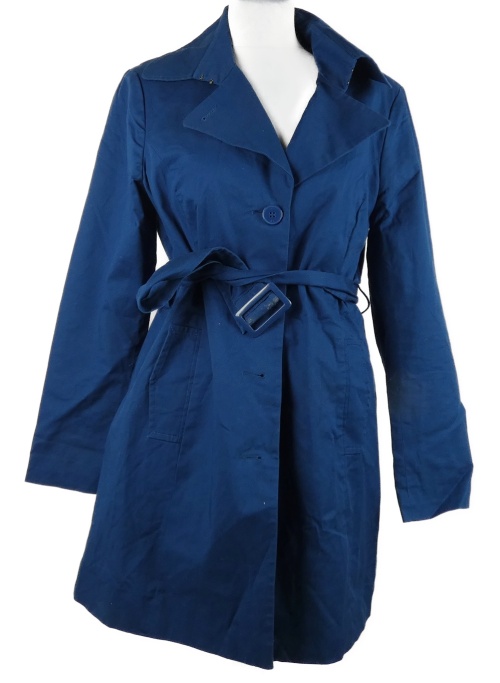 Dámský námořnicky modrý plátěný jarní kabát s páskem C&A