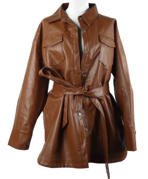 Dámský hnědý koženkový kabát s páskem Shein