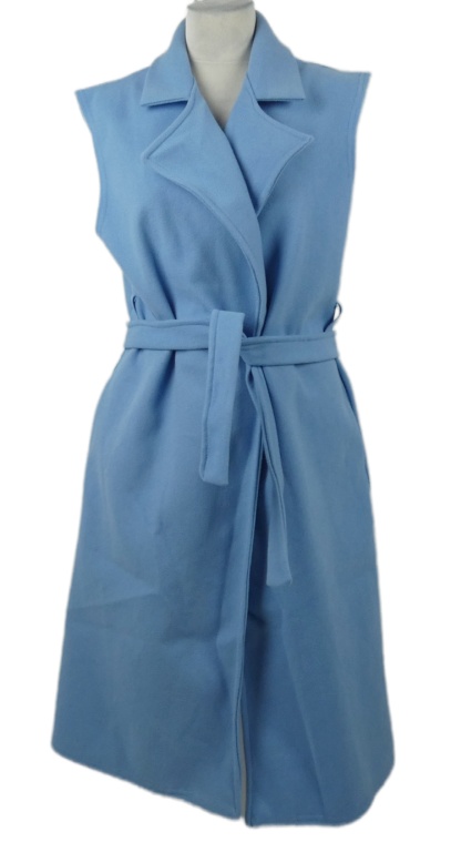 Dámská světlemodrá flaušová dlouhá vesta s páskem