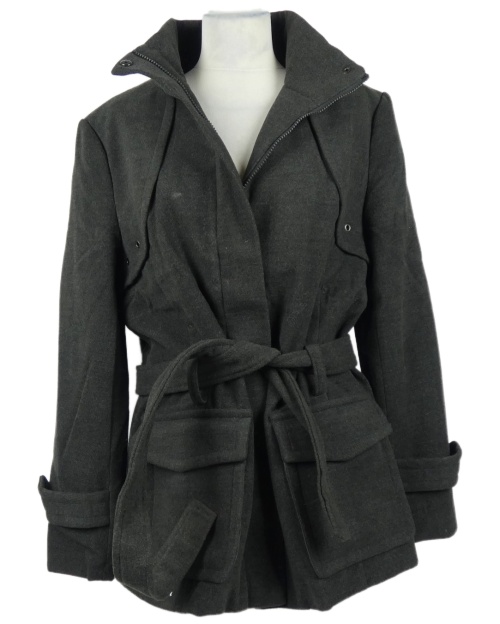 Dámský tmavošedý flaušový kabát s páskem Dunnes