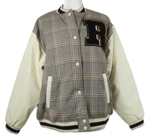 Dámský kostkovano-smetanový zateplený bomber s písmenkem H&M