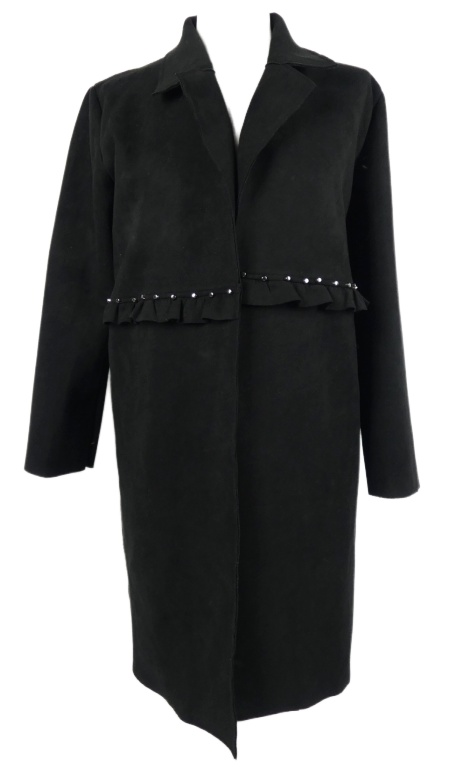 Dámský černý semišovo/pletený kabátový cardigán s cvočky
