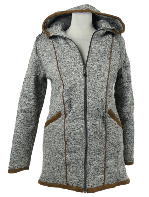 Dámský šedý melírovaný pletený zateplený kabát s kapucí