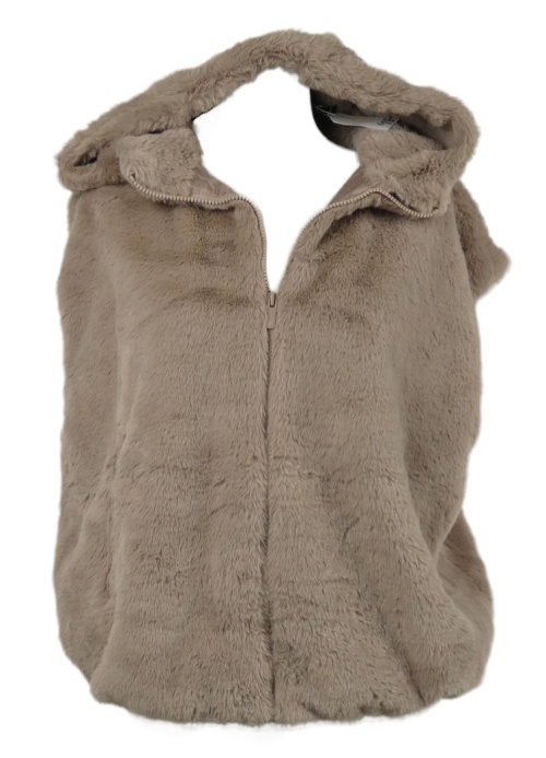 Nové - Dámská starorůžová kožešinová vesta s kapucí Primark