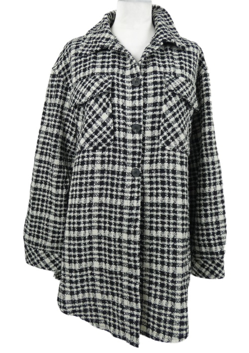 Dámský černo-bílý kostkovaný pletený kabát Shein