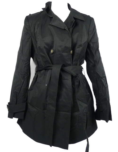Dámský černý šusťákový jarní kabát s páskem Debenhams