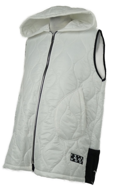 Dámská bílá šusťáková prošívaná zateplená vesta s kapucí