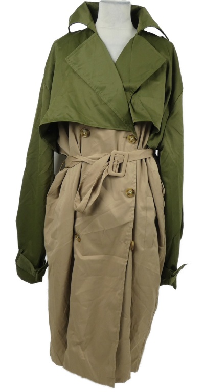 Dámský béžovo-khaki šusťákový kabát s páskem PrettyLittle Thing