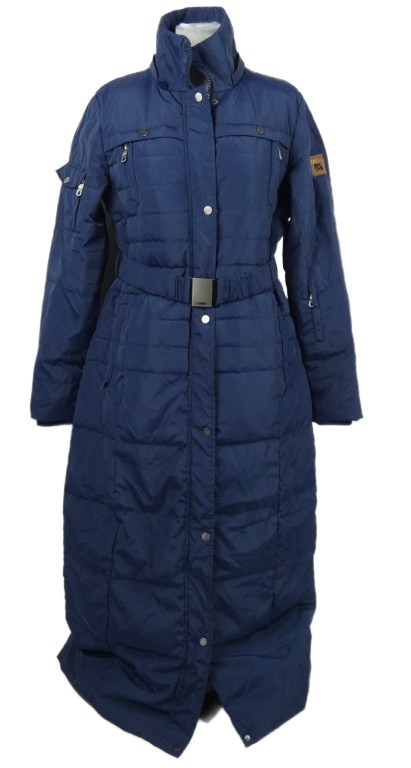 Dámský tmavomodrý šusťákový zimní péřový kabát s páskem Kayra