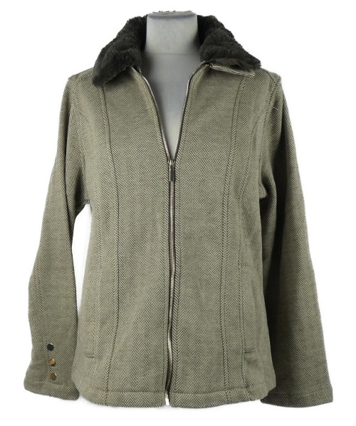Dámská béžovo-černá vzorovaná pletená bunda s kožíškem Classic