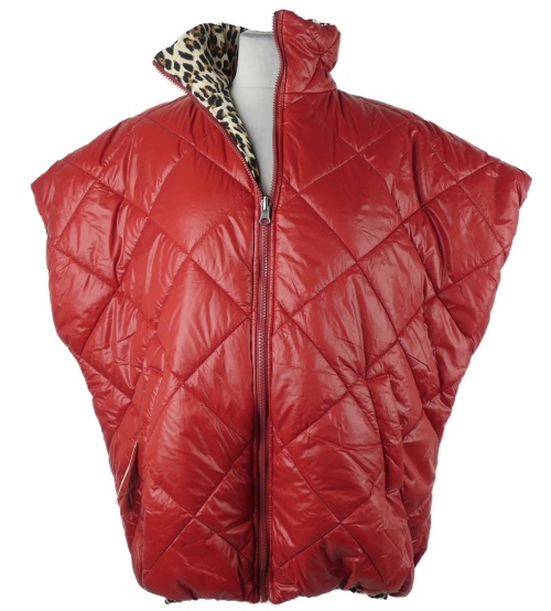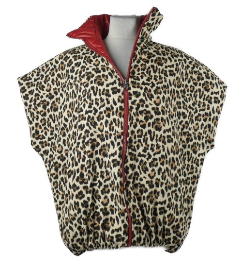 Nové - Dámská červená/vzorovaná šusťáková zateplená vesta