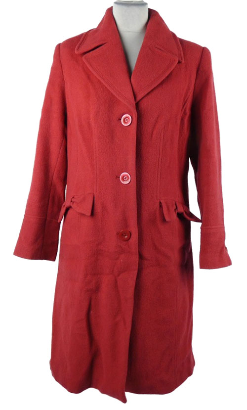 Dámský červený vlněný kabát s mašlemi M&S
